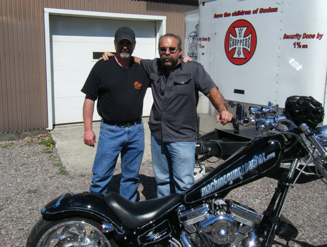 The Paint Chop just finished painting this bike for the Machine Gun Preacher tour starting April 2009 in Hollywood. Featured with the Angels of East Africa bike built by Jesse James and West Coast Choppers.
